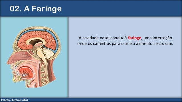 4. 4. 02. A Faringe Imagem: Centralx Atlas A cavidade nasal conduz à faringe, uma interseção onde os caminhos para o ar e o alimento se cruzam.