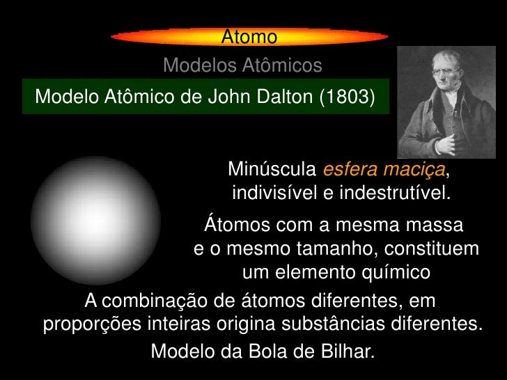 2. 2. Átomo Modelos AtômicosModelo Atômico de John Dalton (1803) Minúscula esfera maciça, indivisível e indestrutível. Átomos com a mesma massa e o mesmo tamanho, constituem um elemento químico A combinação de átomos diferentes, emproporções inteiras origina substâncias diferentes. Modelo da Bola de Bilhar.