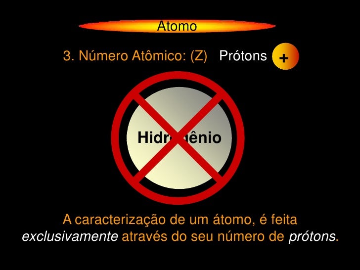23. 23. Átomo 3. Número Atômico: (Z) Prótons + Hidrogênio A caracterização de um átomo, é feitaexclusivamente através do seu número de prótons.
