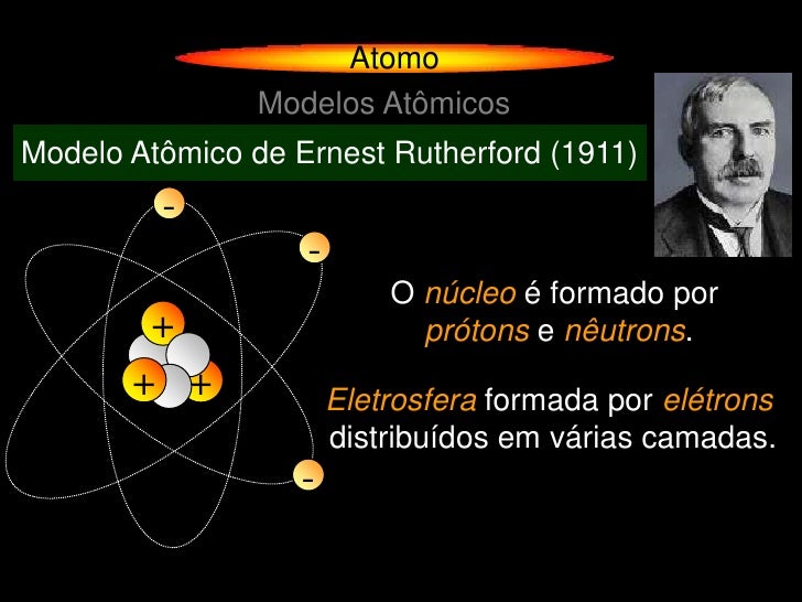 3. 3. Átomo Modelos Atômicos Modelo Atômico de Joseph John Thomson (1903)+ - - Propôs um modelo maciço, esférico, mas divisível. -- Constituído por um fluido de carga - positiva, com elétrons dispersos. Modelo do “Pudim de Passas”.