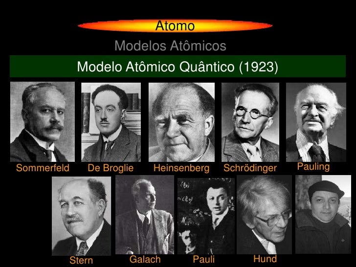 7. 7. Átomo Modelos Atômicos Modelo Atômico Quântico (1923)Sommerfeld De Broglie Heinsenberg Schrödinger Pauling Stern Galach Pauli Hund