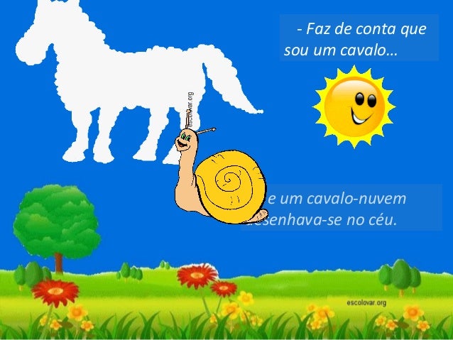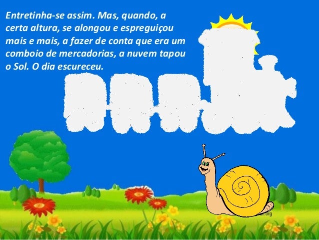 10. 10. Cá em baixo, o caracol, que andava à sua vida, suspirou, aborrecido: - Esta nuvem só faz disparates. É o que sucede a quem não tem nada que fazer.