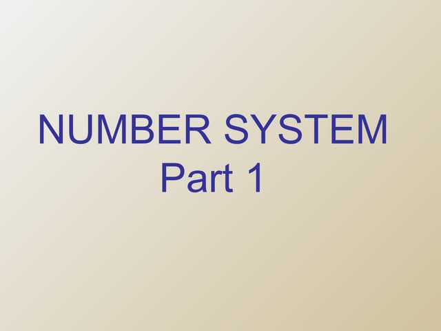 2. 2. EE-314 Number Systems 2 Conversion between Decimal and Binary Converting a number from binary to decimal is quite easy. All that is required is to find the decimal value of each binary digit position containing a 1 and add them up. For example: convert 101102 to decimal. 1 0 1 1 0 ___________1 x 21 = 2 ____________1 x 22 = 4 _______________1 x 24 = 16 22 Another example: convert 110112 to decimal 1 1 0 1 1 _________1 x 20 = 1 __________1 x 21 = 2 _____________1 x 23 = 8 ______________1 x 24 = 16 27 The method for converting a decimal number to binary is one that can be used to convert from decimal to any number base. It involves using successive division by the radix until the dividend reaches 0. At each division, the remainder provides a digit of the converted number, starting with the least significant digit. An example of the process: convert 3710 to binary 37 / 2 = 18 remainder 1 (least significant digit) 18 / 2 = 9 remainder 0 9 / 2 = 4 remainder 1 4 / 2 = 2 remainder 0 2 / 2 = 1 remainder 0 1 / 2 = 0 remainder 1 (most significant digit) The resulting binary number is: 100101 Another example: convert 9310 to binary 93 / 2 = 46 remainder 1 (least significant digit) 46 / 2 = 23 remainder 0 23 / 2 = 11 remainder 1 11 / 2 = 5 remainder 1 5 / 2 = 2 remainder 1 2 / 2 = 1 remainder 0 1 / 2 = 0 remainder 1 (most significant digit) The resulting binary number is: 1011101 Hexadecimal Numbers In addition to binary, another number base that is commonly used in digital systems is base 16. This number system is called hexadecimal, and each digit position represents a power of 16. For any number base greater than ten, a problem occurs because there are more than ten symbols needed to represent the numerals for that number base. It is customary in these cases to use the