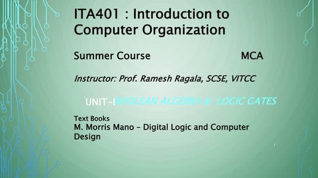 6. 6. EE-314 Number Systems 6 Another example: Find the 2’s complement of the following 8 bit number 10110101 01001010 Invert the bits + 00000001 then add 1 = 01001011 The 2’s complement of 10110101 is 01001011 The counting sequence for an eight bit binary value using 2’s complement representation appears as follows: 01111111 7Fh 127 largest magnitude positive number 01111110 7Eh 126 01111101 7Dh 125 … 00000011 03h 00000010 02h 00000001 01h 00000000 00h 11111111 0FFh -1 11111110 0FEh -2 11111101 0FDh -3 … 10000010 82h -126 10000001 81h -127 10000000 80h -128 largest magnitude negative number Notice in the above sequence that counting up from 0, when 127 is reached, the next binary pattern in the sequence corresponds to -128. The values jump from the greatest positive number to the greatest negative number, but that the sequence is as expected after that. (i.e. adding 1 to –128 yields –127, and so on.). When the count has progressed to 0FFh (or the largest unsigned magnitude possible) the count wraps around to 0. (i.e. adding 1 to –1 yields 0). ASCII Character Encoding The name ASCII is an acronym for: American Standard Code for Information Interchange. It is a character encoding standard developed several decades ago to provide a standard way for digital machines to encode characters. The ASCII code provides a mechanism for encoding alphabetic characters, numeric digits, and punctuation marks for use in representing text and numbers written using the Roman alphabet. As originally designed, it was a seven bit code. The seven bits allow the representation of 128 unique characters. All of the alphabet, numeric digits and standard English punctuation marks are encoded. The ASCII standard was later extended to an eight bit code (which allows 256 unique code patterns) and various additional symbols were added, including characters with diacritical marks (such as accents) used in European languages, which don’t appear in English. There are also numerous non-standard extensions to ASCII giving different encoding for the upper 128 character codes than the standard. For example, The character set encoded into the display card for the original IBM PC had a non-standard encoding for the upper character set. This is a non-standard extension that is in very wide spread use, and could be considered a standard in itself. Some important things to note about ASCII code: 1) The numeric digits, 0-9, are encoded in sequence starting at 30h 2) The upper case alphabetic characters are sequential beginning at 41h 3) The lower case alphabetic characters are sequential beginning at 61h
