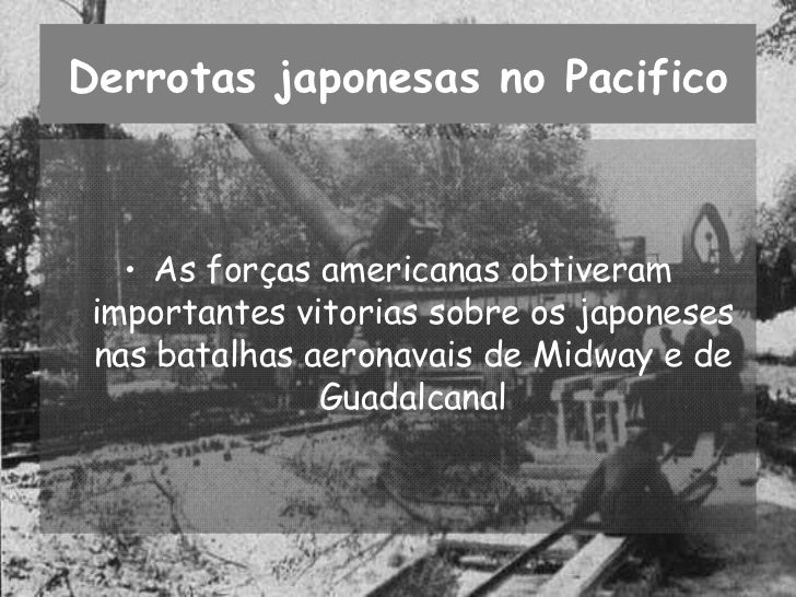 23. 23. Derrotas japonesas no Pacifico <ul><li>As forças americanas obtiveram importantes vitorias sobre os japoneses nas batalhas aeronavais de Midway e de Guadalcanal </li></ul>