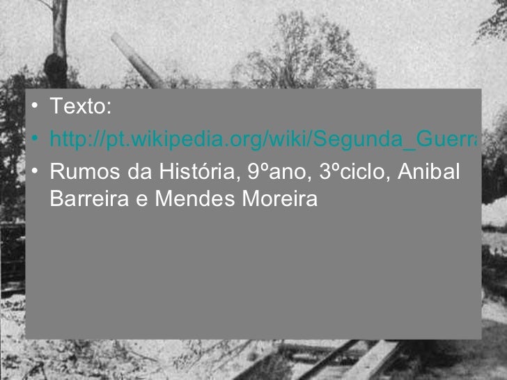 38. 38. <ul><li>Texto: </li></ul><ul><li>http://pt.wikipedia.org/wiki/Segunda_Guerra_Mundial </li></ul><ul><li>Rumos da História, 9ºano, 3ºciclo, Anibal Barreira e Mendes Moreira </li></ul>
