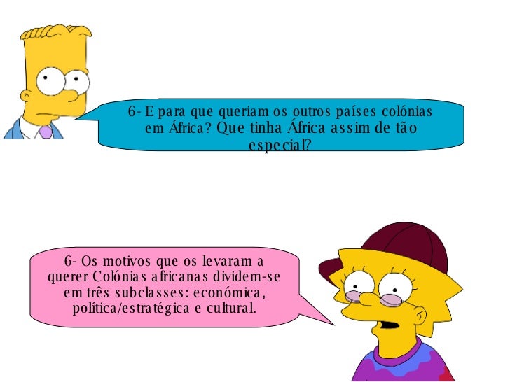 6- E para que queriam os outros países colónias em África?  Que tinha África assim de tão especial? 6- Os motivos que os l...