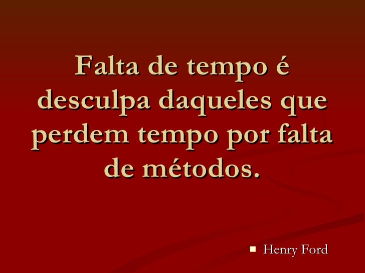 9. 11. Falta de tempo é desculpa daqueles que perdem tempo por falta de métodos. <ul><li>Henry Ford </li></ul>