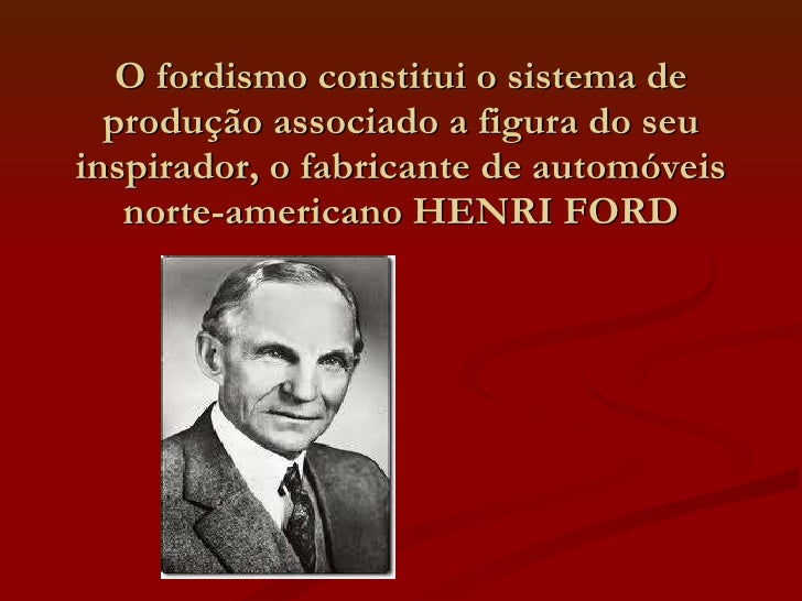 2. 2. O fordismo constitui o sistema de produção associado a figura do seu inspirador, o fabricante de automóveis norte-americano HENRI FORD