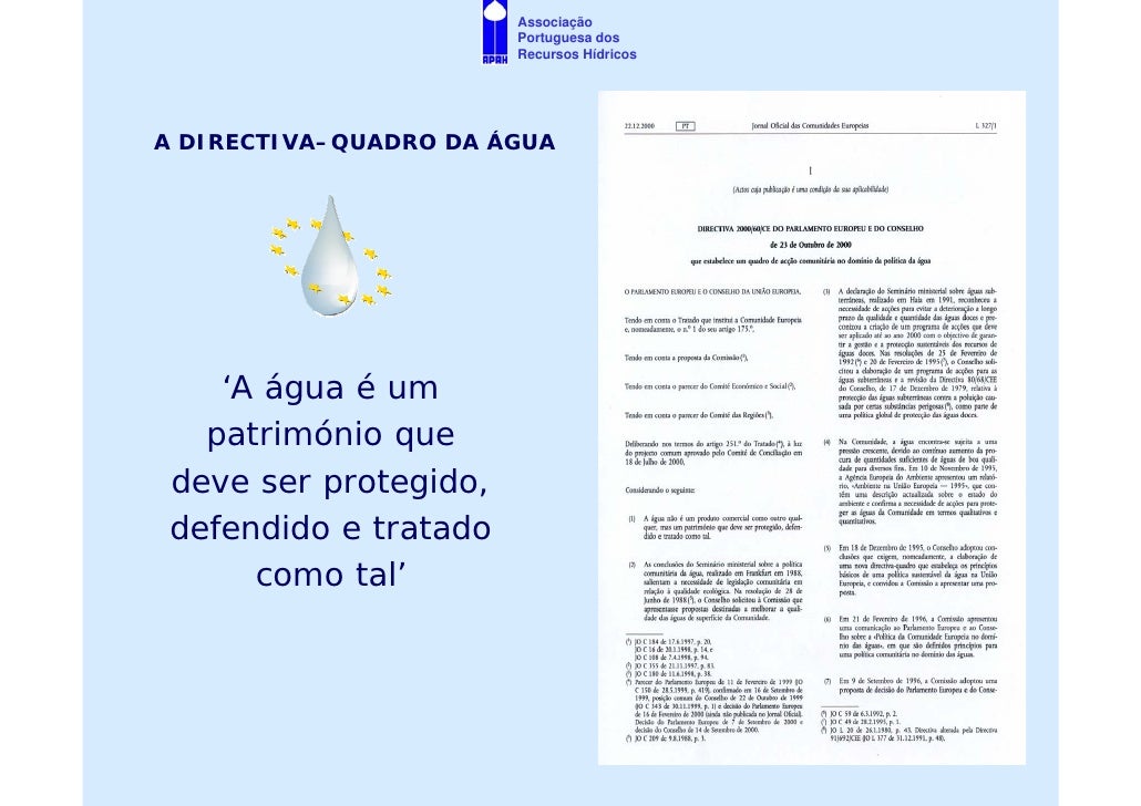 15. 15. Associação Portuguesa dos Recursos Hídricos A DIRECTIVA–QUADRO DA ÁGUA ‘A água é um património que deve ser protegido, defendido e tratado como tal’