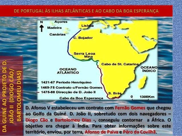 11. 11. DAGUINÉAOPROJETODED. JOÃOII(DIOGOCÃO/ BARTOLOMEUDIAS) D. Afonso V estabeleceu um contrato com Fernão Gomes que chegou ao Golfo da Guiné. D. João II, sobretudo com dois navegadores – Diogo Cão e Bartolomeu Dias -, conseguiu contornar a África. O objetivo era chegar à Índia. Para obter informações sobre este território, enviou, por terra, Afonso de Paiva e Pêro da Covilhã.
