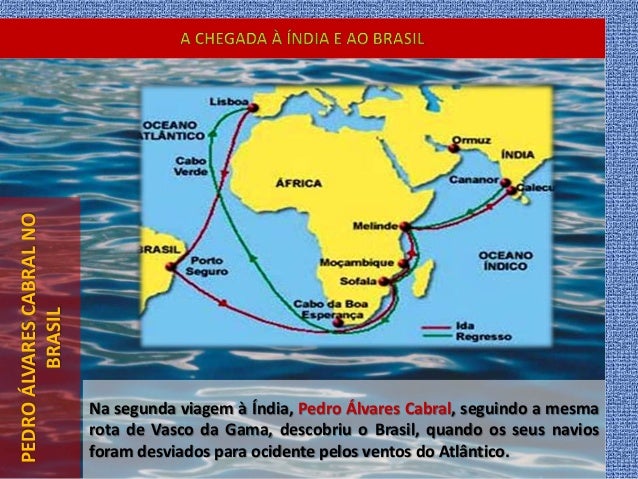 14. 14. PEDROÁLVARESCABRALNO BRASIL Na segunda viagem à Índia, Pedro Álvares Cabral, seguindo a mesma rota de Vasco da Gama, descobriu o Brasil, quando os seus navios foram desviados para ocidente pelos ventos do Atlântico.