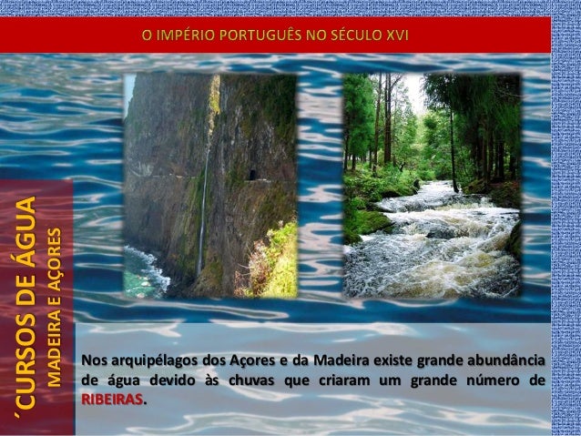 18. 18. ´CURSOSDEÁGUA MADEIRAEAÇORES Nos arquipélagos dos Açores e da Madeira existe grande abundância de água devido às chuvas que criaram um grande número de RIBEIRAS.