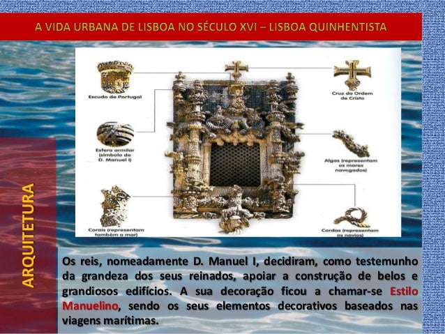 45. 45. ARQUITETURA Os reis, nomeadamente D. Manuel I, decidiram, como testemunho da grandeza dos seus reinados, apoiar a construção de belos e grandiosos edifícios. A sua decoração ficou a chamar-se Estilo Manuelino, sendo os seus elementos decorativos baseados nas viagens marítimas.