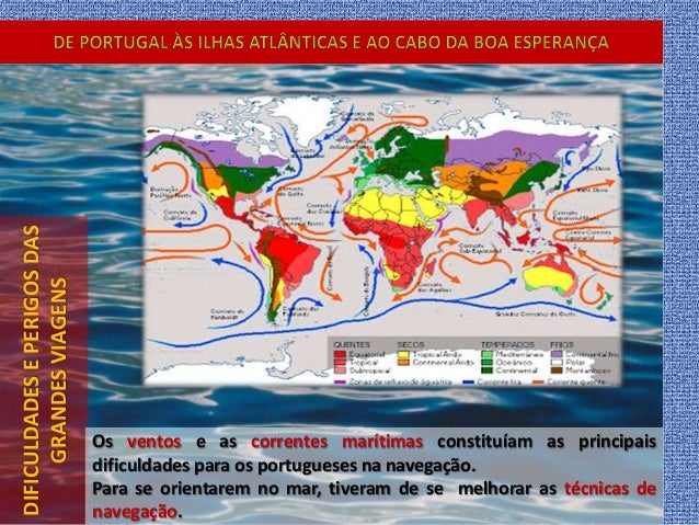 8. 8. DIFICULDADESEPERIGOSDAS GRANDESVIAGENS Os ventos e as correntes marítimas constituíam as principais dificuldades para os portugueses na navegação. Para se orientarem no mar, tiveram de se melhorar as técnicas de navegação.