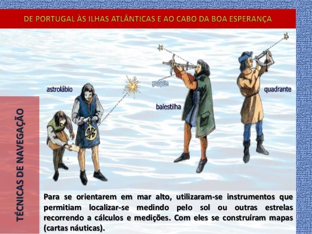 9. 9. TÉCNICASDENAVEGAÇÃO Para se orientarem em mar alto, utilizaram-se instrumentos que permitiam localizar-se medindo pelo sol ou outras estrelas recorrendo a cálculos e medições. Com eles se construíram mapas (cartas náuticas).