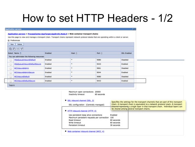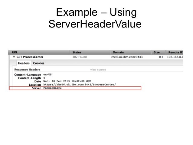 10. 10. Bibliography WAS 8.0 - Information Center - HTTP transport channel custom properties WAS 7.0 – Information Center - HTTP transport custom properties Apache Documentation - ServerSignature Directive Apache Documentation - ServerTokens Directive IHS Documentation - AddServerHeader Directive