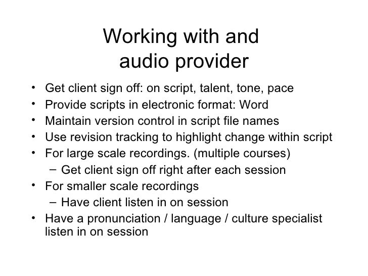This is a powerpoint presentation that was developed to provide best practices for audio production in e-learning development.