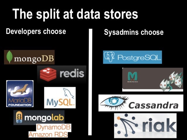 14. 14. Developers choose Sysadmins choose The split at data stores