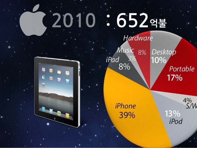 51. 51. 2010 :.652억불 Hardware Music 8% Desktop iPad 3% 10% 8% Portable 17% 4% iPhone S/W 39% 13% iPod S/W