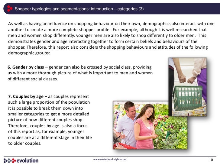 It looks at these behaviours and segmenting by Age, Gender, SEG, Singles, Couples, Parents, Empty Nesters and Older shoppers, comparing and contrasting the different attitudes amongst the key drivers listed.