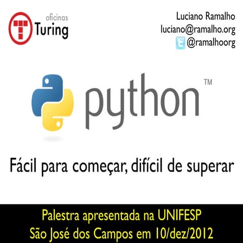 Apresentação realizada durante a PythonBrasil[9]. Segue abaixo a descrição da palestra: