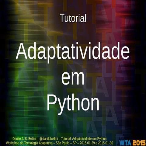 Slides da palestra realizada no Centro de Convenções Ulysses Guimarães (Brasília - DF) durante o PythonBrasil[9]. Segue abaixo a descrição da palestra:
