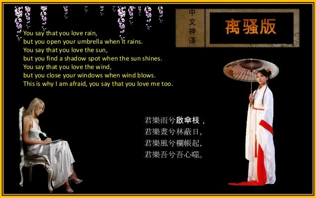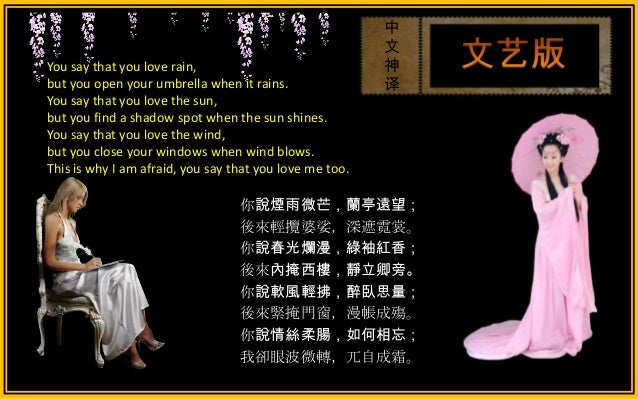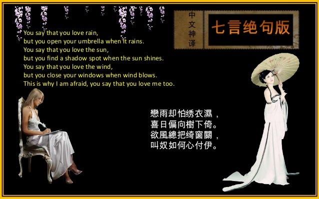 神級翻譯 - 中文歷史淵源遠流長, 一段簡明的英語,居然可以演繹出一段段美輪美奐的詩章。這不得不再一次讓人為中文之美所震撼!