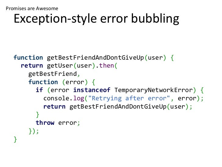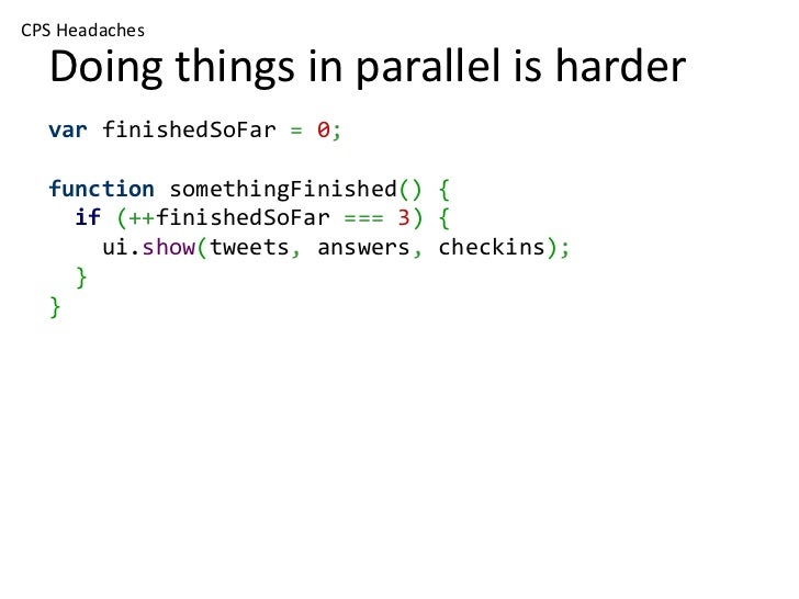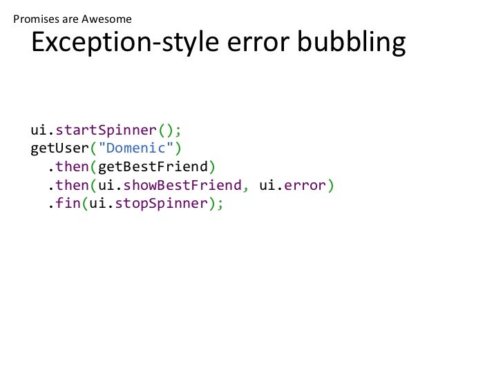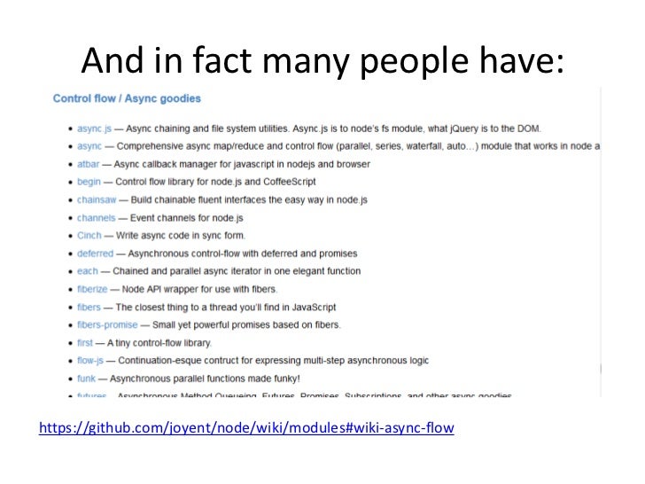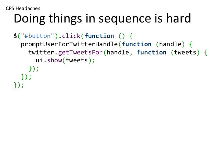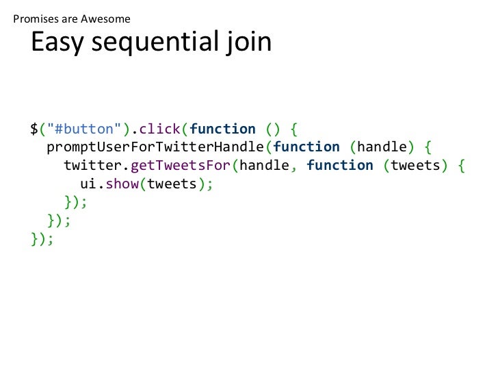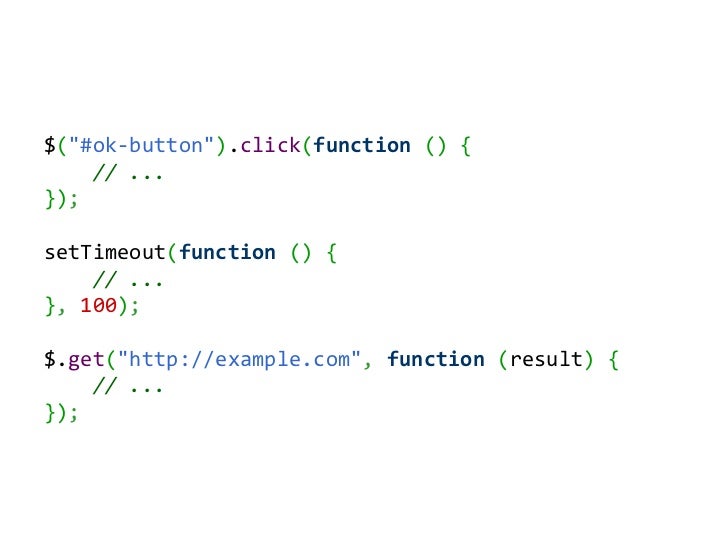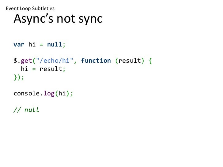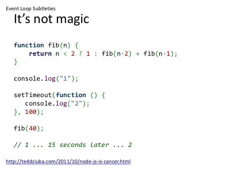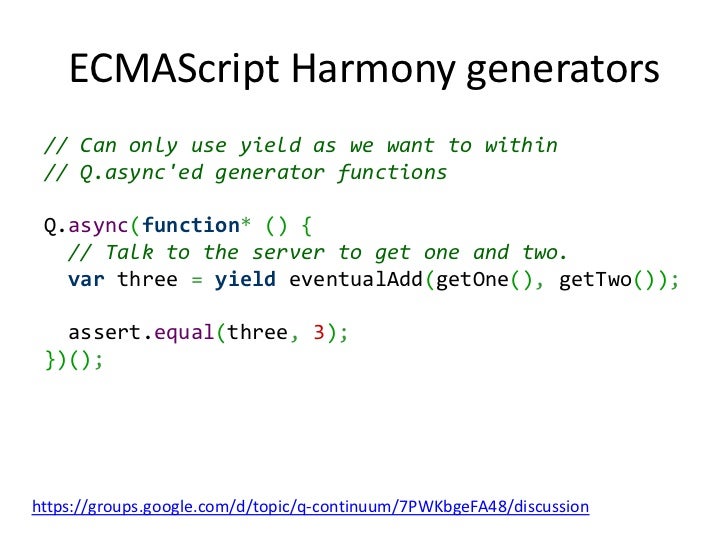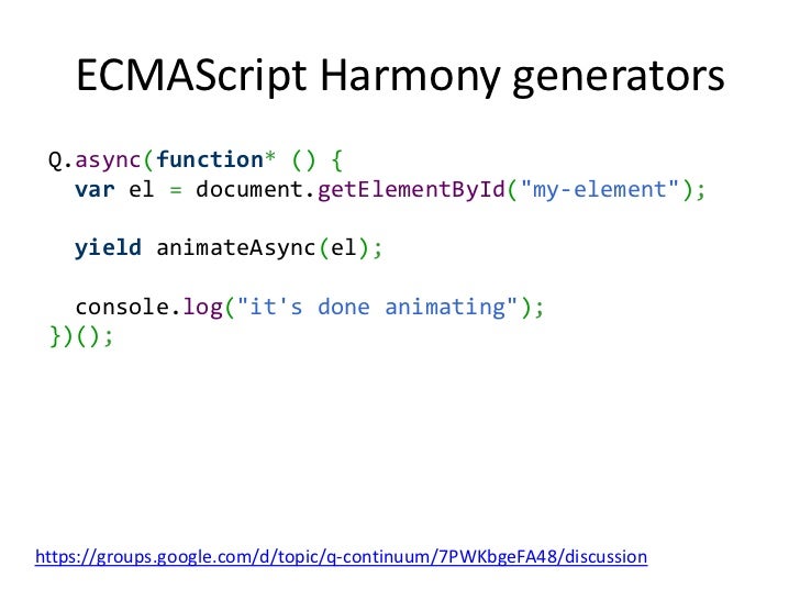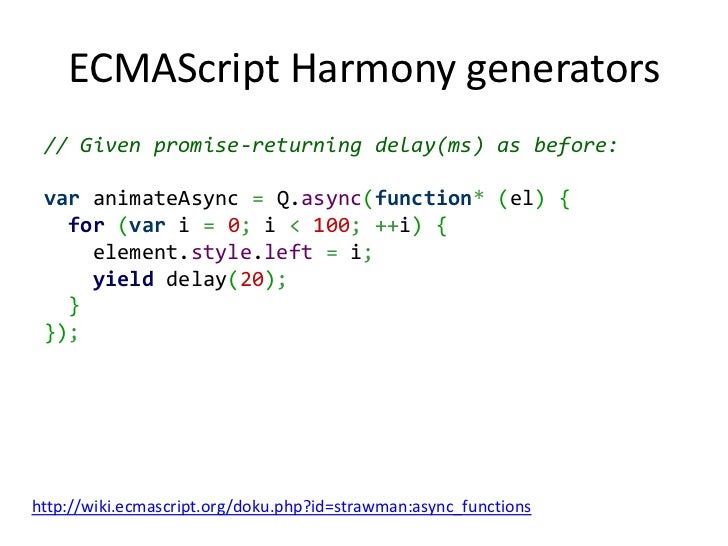 We go through the basics of the event loop, highlighting the drawbacks of asynchronous programming in a naive callback style. Fortunately, we can use the magic of promises to escape from callback hell with a powerful and unified interface for async APIs. Finally, we take a quick look at the possibilities for using coroutines both in current and future (ECMAScript Harmony) JavaScript.