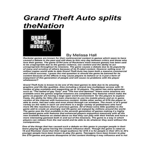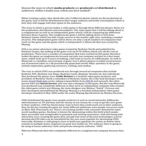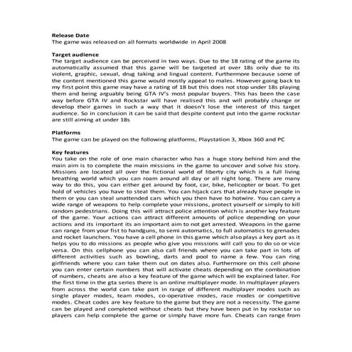 5. 5. Press Relation This is a company that worked with the image of Red Dead Redemption and made it as popular and well known as possible. They also work creating a positive and successful image for the game as well as the company. PRODUCT- Red Dead Redemption The promotion was Red Dead Redemption was a long and expensive process which Rockstar undertook, it took 5 years to plan and make, overall it cost them $100million (£70 million). Rage is Rockstar;s technology group at Rockstar San Diego, they do the technology within the games. they create for Microsoft Windows, Playstation 3, Wii and Xbox 360. Rage supports engine libraries and tools for graphics, physics, animation, networking, character behaviors, core systems and many more. The IP (intellectual property) for Rockstar is brought by Angel Studios and created into Rockstar North. Then came Red Dead Revolver by a company called capcom which is a japanese game studio which then Rockstar brought. Content Red Dead Redemption is an open world game western themed game, players can interact within the game environment and engage in combat with enemies with a range of different weapons. For transportation within the game, horses are used however they do need to be trained before you can ride them. There are 57 missions to complete throughout the game however there are only 10 that deal directly with the story of John Marstons. As for quality, there are a huge range of colours that are used in the game and their 3D graphics they are very detailed and are not glitchy or blocked in anyway. The gameplay is quite open as it allows the player to explore the game without completing missions. However, when missions and tasks are completed, parts of the game are unlocked and makes the game more interesting. Red Dead Redemption was rated at a 18+ due to the violence, nudity, strong language, strong sexual content and use of drugs. Audience The target audience for Red Dead Redemption would be a hardcore gamer who enjoys adventure and exploration games. The gamer preferably needs to have skills on this genre of game to allow them to move up the game and be able to complete the missions. The demographic for this game would be teenagers as they would understand the concepts of the game and find its aspects more enjoyable. Price The RRP for Red Dead Redemption is £40. This price allows VAT, Retail, console license and distribution to be taken our and R* still make a profit. Placement As the game is such a huge one, the placement of it is very important as there is huge amounts of money from Rockstar resting on it. The game is sold in retail stores they they make up to 80% of all sales. The rest of the sales come from online and downloads. UNIT04-A01 Lucy Taylor Promotion