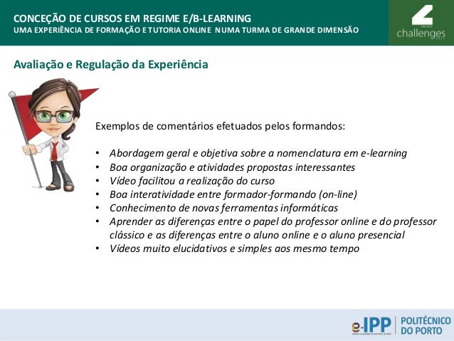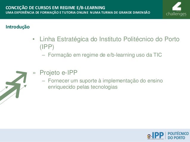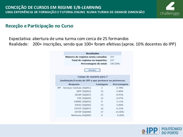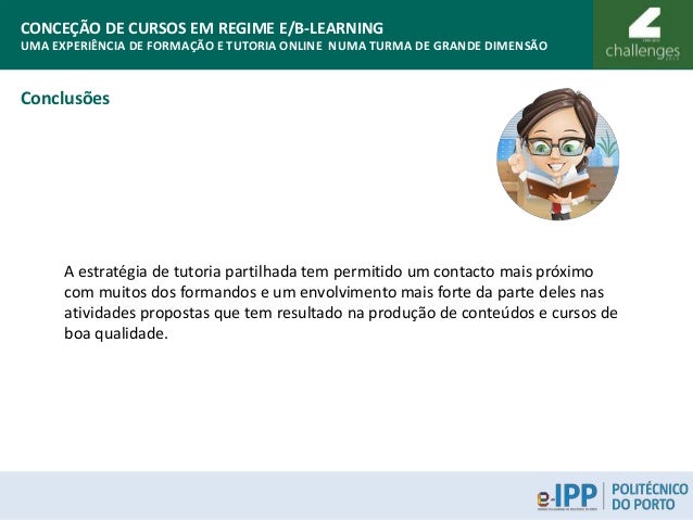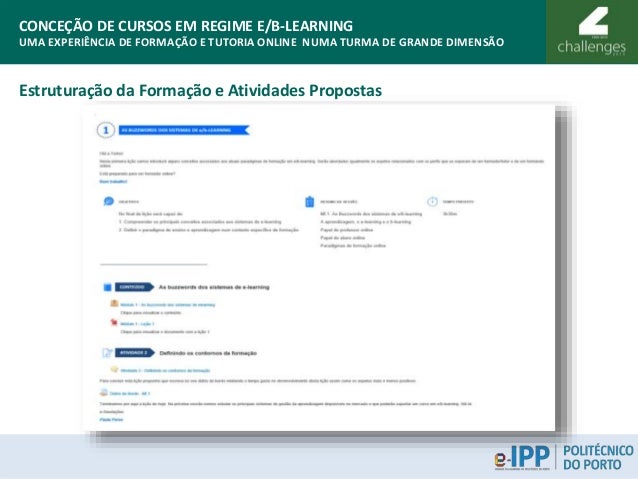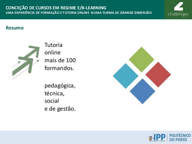 Apresentação do artigo "Conceção de cursos em regime e/b-Learning: uma experiência de formação e tutoria online numa turma de grande dimensão", realizado por: