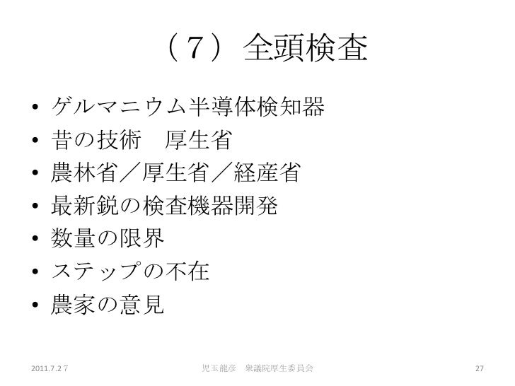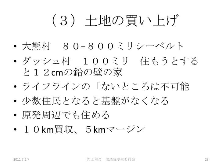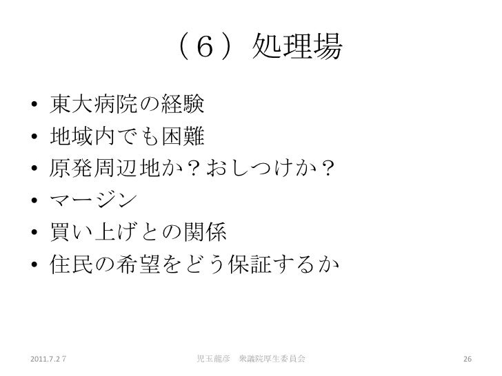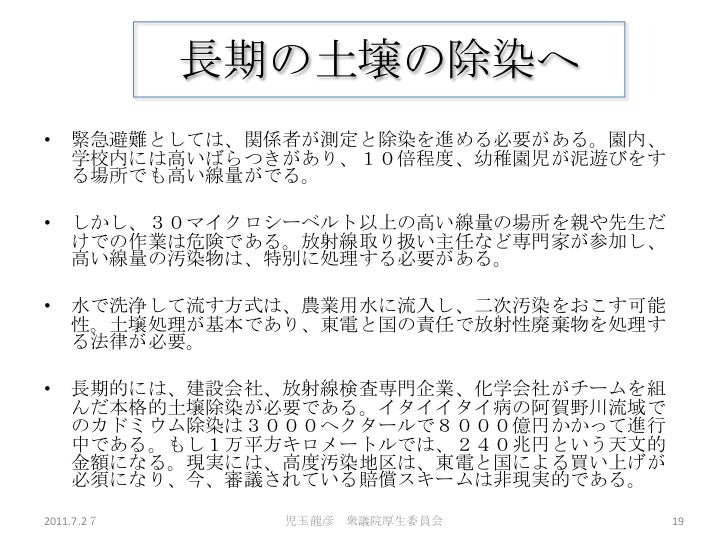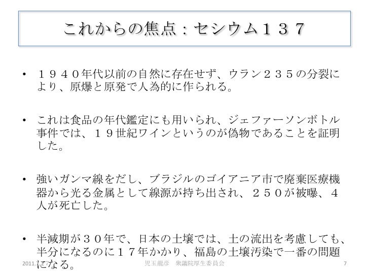 7/27日の厚労委員会における児玉龍彦の発表の詳細資料です。