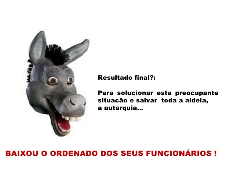19. 19. Resultado final?: Para solucionar esta preocupante situacão e salvar toda a aldeia, a autarquia… BAIXOU O ORDENADO DOS SEUS FUNCIONÁRIOS !