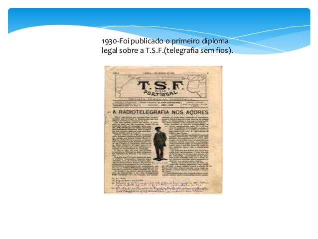 12. 12. 1930-Foi publicado o primeiro diplomalegal sobre a T.S.F.(telegrafia sem fios).