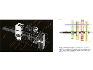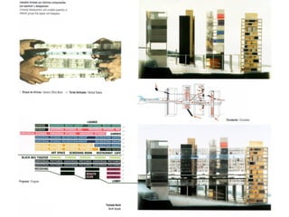 The document discusses several architectural projects including a cultural centre at Effenaar designed by MVRDV, a hyperbuilding in Bangkok designed by OMA, and Universal Studios designed by OMA. Contact email addresses for OMA are also provided.