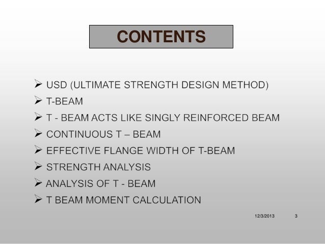 Welcome to my presentation . Here you will find conceptual theory about T beam by Ultimate strength design . If any query , you can ask . Thank you .