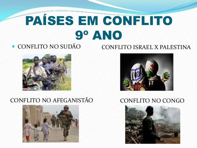 PAÍSES EM CONFLITO9º ANO CONFLITO NO SUDÃOCONFLITO NO AFEGANISTÃOCONFLITO ISRAEL X PALESTINACONFLITO NO CONGO