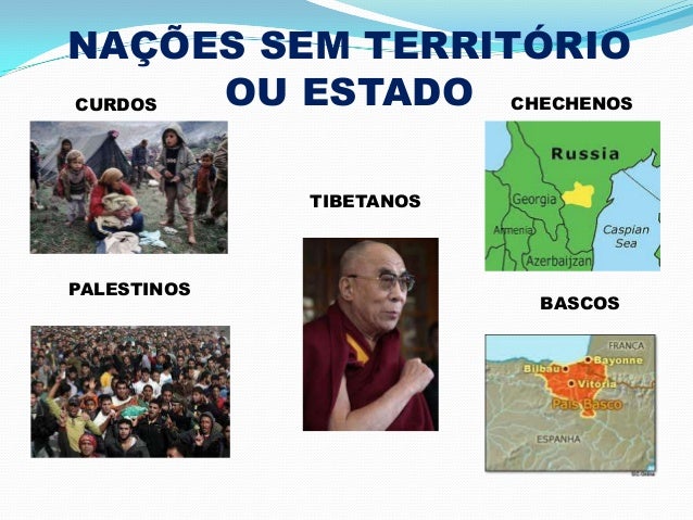NAÇÕES SEM TERRITÓRIOOU ESTADOCURDOSPALESTINOSCHECHENOSTIBETANOSBASCOS