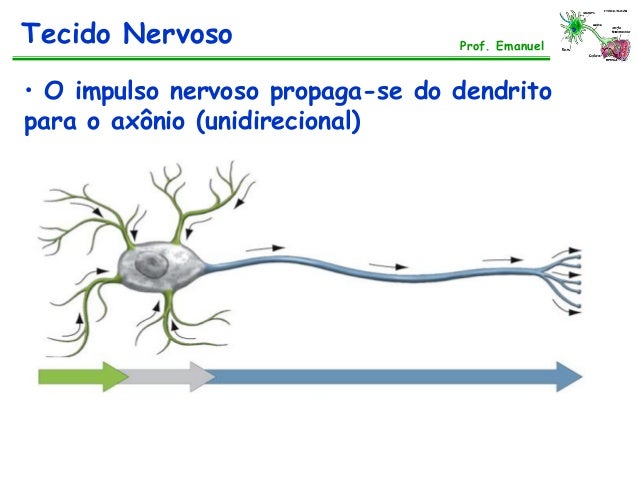 11. 11. • O impulso nervoso propaga-se do dendrito para o axônio (unidirecional) Tecido Nervoso Prof. Emanuel