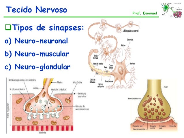 17. 17. Tipos de sinapses: a) Neuro-neuronal b) Neuro-muscular c) Neuro-glandular Tecido Nervoso Prof. Emanuel