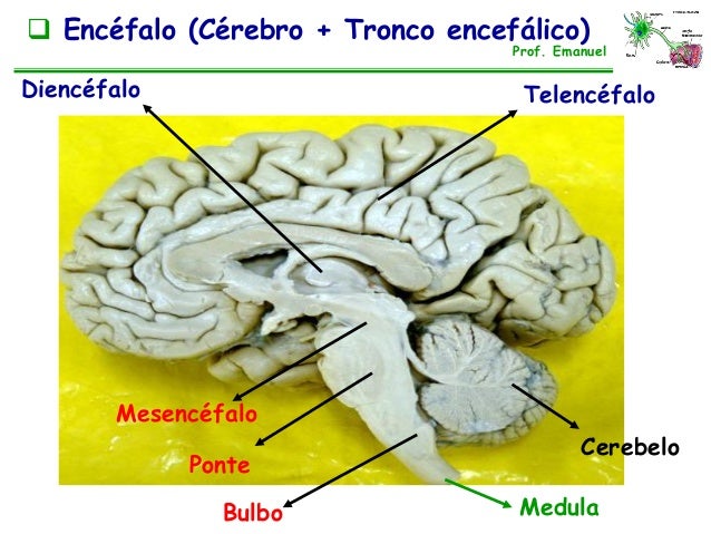 39. 39. Cerebelo MedulaBulbo Ponte Telencéfalo  Encéfalo (Cérebro + Tronco encefálico) Prof. Emanuel Mesencéfalo Diencéfalo