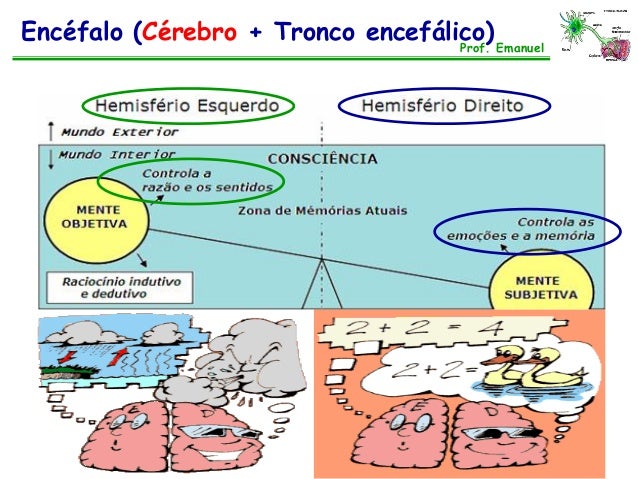 43. 43. Encéfalo (Cérebro + Tronco encefálico) Principais funções corticais: • Motricidade • Funções sensoriais • Racíocinio lógico • Memória e cognição • Linguagem. Prof. Emanuel