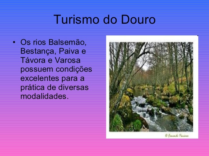 5. 5. Turismo do Douro <ul><li>Os rios Balsemão, Bestança, Paiva e Távora e Varosa possuem condições excelentes para a prática de diversas modalidades. </li></ul>