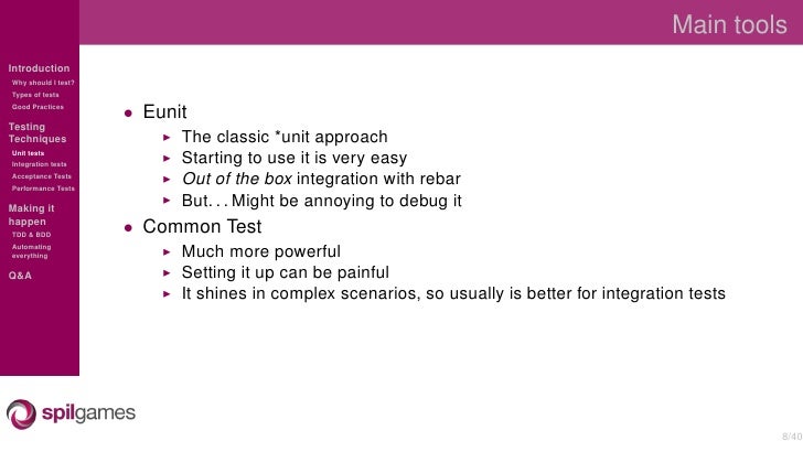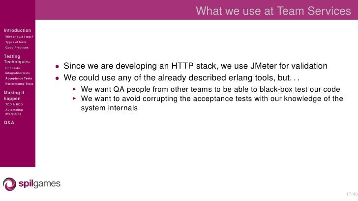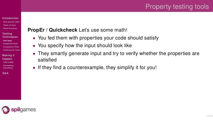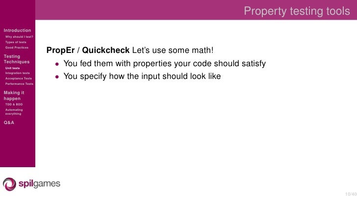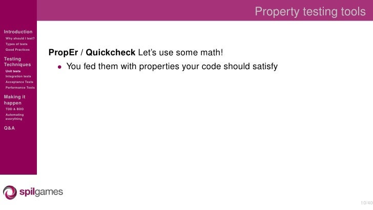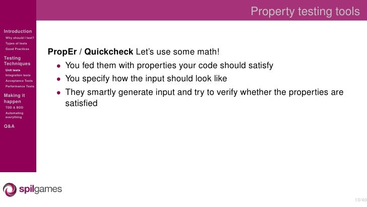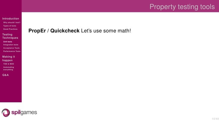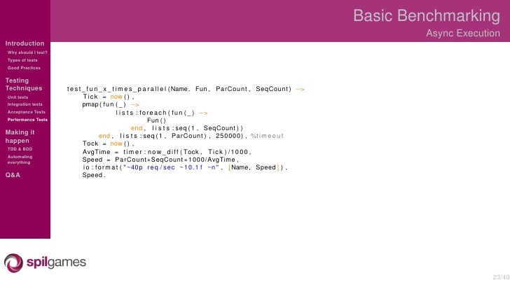 Overview of the different testing techniques used at SpilGames to test our Erlang backend.