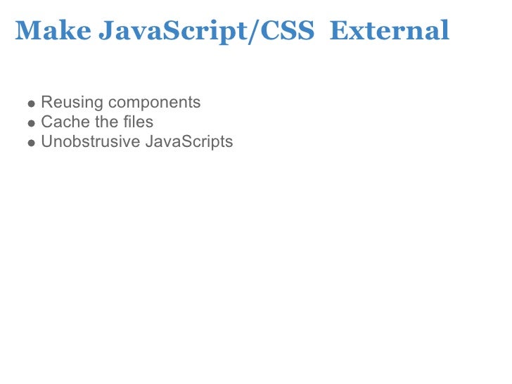 35. 35. Make JavaScript/CSS External Reusing components Cache the files Unobstrusive JavaScripts