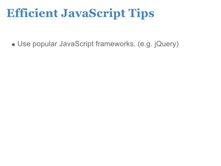 42. 42. Efficient JavaScript Tips Use popular JavaScript frameworks. (e.g. jQuery)