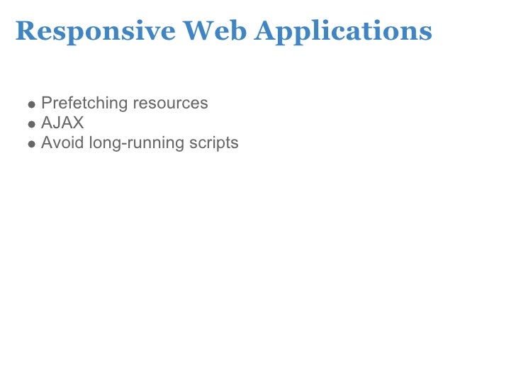 44. 44. Responsive Web Applications Prefetching resources AJAX Avoid long-running scripts