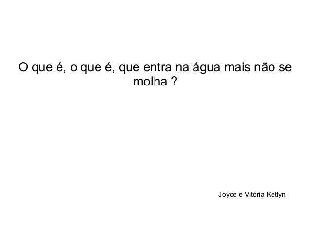 12. 12. O que é, o que é, que entra na água mais não se molha ? Joyce e Vitória Ketlyn
