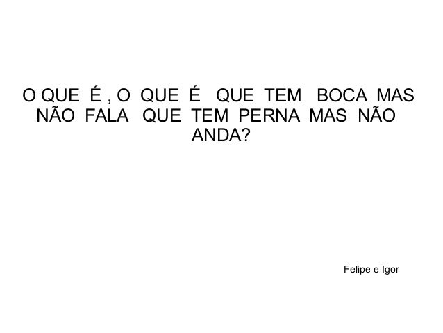 19. 19. O QUE É , O QUE É QUE TEM BOCA MAS NÃO FALA QUE TEM PERNA MAS NÃO ANDA? Felipe e Igor