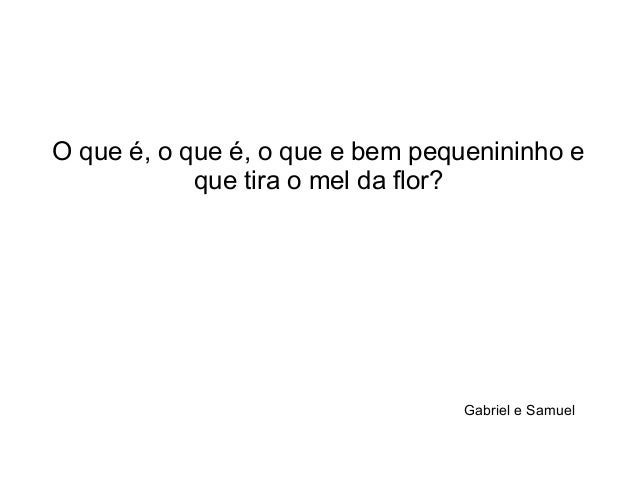 5. 5. O que é, o que é, o que e bem pequenininho e que tira o mel da flor? Gabriel e Samuel